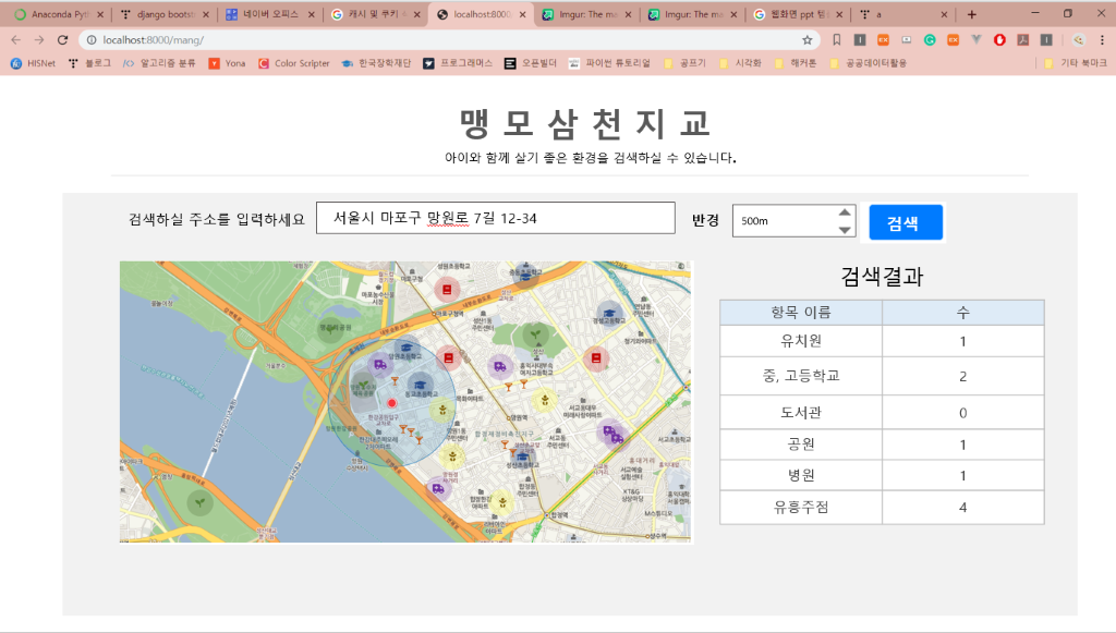 ๊ณต๊ณต ๋ฐ์ดํฐ๋ฅผ ์ด์ฉํด์ ์์ด๋ฅผ ํค์ฐ๊ธฐ ์ข์ ์์น๋ฅผ ์ฐพ์์ฃผ๋ ์นํ์ด์ง๋ฅผ ๊ตฌ์ํ์๋ค.