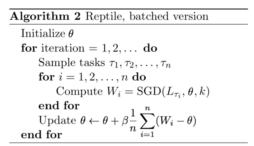 ผ๋ฌธ์์๋ REPTILE(2018) ์ด๋ผ๋ few shot learning ์๊ณ ๋ฆฌ์ฆ์ ๋ณํํ์ฌ ์ฌ์ฉํ์๋ค. meta learning ์ ์ฌ๋ฌ ๋ฐฉ์ ์ค, Optimization ๋ฐฉ์์ ๋ณํํด์ few shot learning ์ด ๊ฐ๋ฅํ๋๋ก ํ ๋