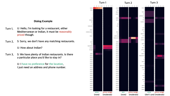 논문의 결과 그림인데, domain과 utterance의 attention을 시각화 한 것이다. 가격을 보면 reasonable price에 attention이 많이 들어가 있음을 알 수 있다.