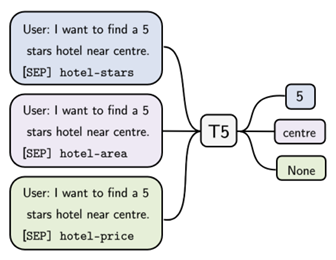 ผ๋ฌธ์์๋ T5๋ฅผ ์ฌ์ฉํด์ DST ๋ชจ๋ธ์ ๋ง๋ค์๋ค. ์ ์ฒด ์ด๋ฏธ์ง๋ ๋ค์๊ณผ ๊ฐ๋ค.
