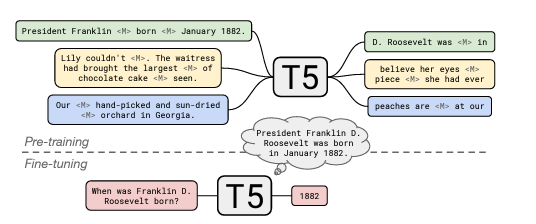 즉 다양한 task에 대해 학습한 T5에게 "루즈벨트 대통령이 태어난 해는?" 이라는 질문을 한다면, T5는 위키피디아의 지식 없이도 1882이라고 답을 하는지 실험해 본 논문이다.