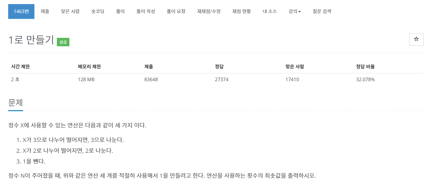 Q1463 1๋ก ๋ง๋ค๊ธฐ(java) ๋ณธ๋ฌธ