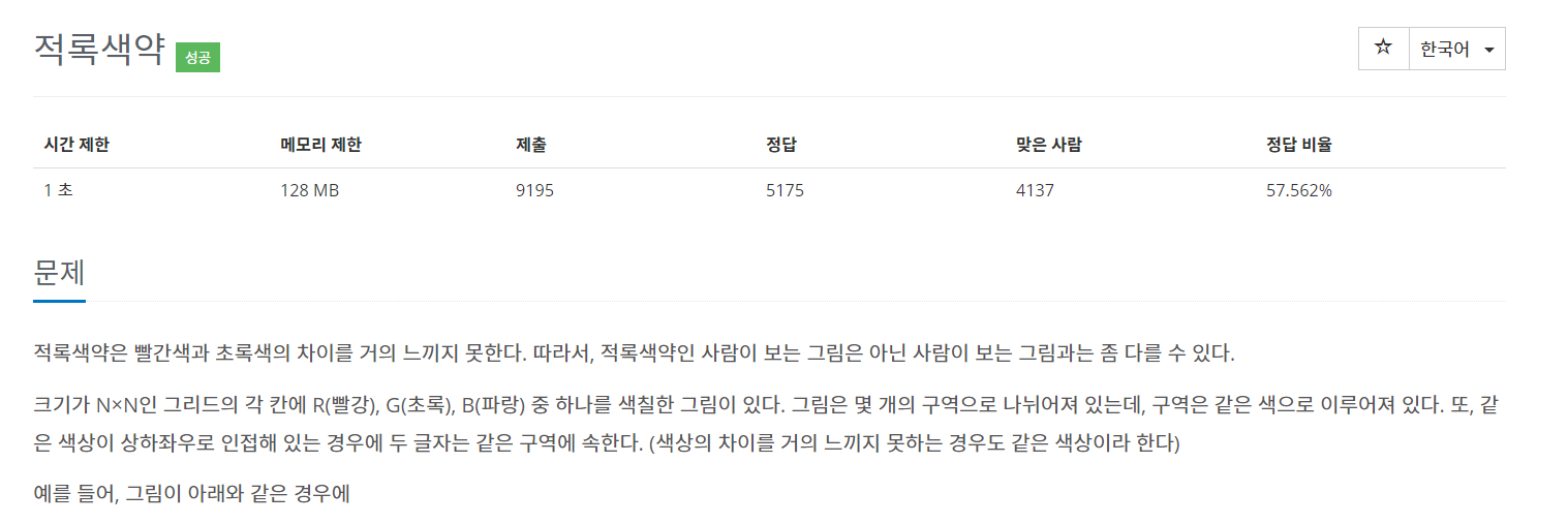 [๋ฐฑ์ค] Q10026 ์ ๋ก์์ฝ(java) ๋ณธ๋ฌธ