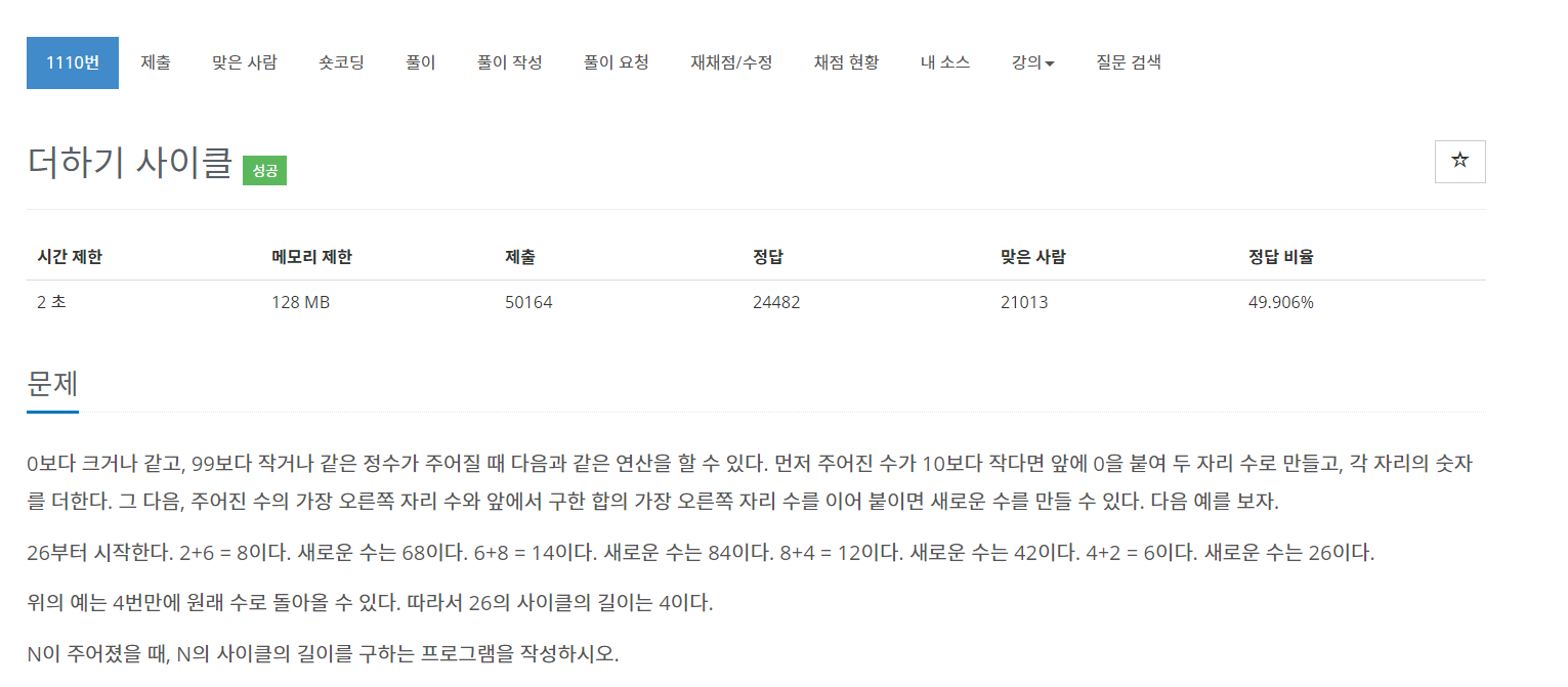 ๋ฐฑ์ค 1110 ๋ฒ ๋ํ๊ธฐ ์ฌ์ดํด ๋ฌธ์ ๋ฅผ ์๋ฐ๋ฅผ ์ด์ฉํด์ ํ์๋ค.